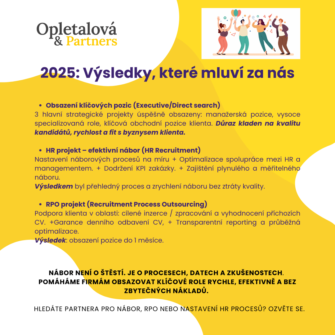 Věříme, že i v roce 2026 budeme spolehlivým partnerem při obsazování klíčových rolí a optimalizaci HR procesů.